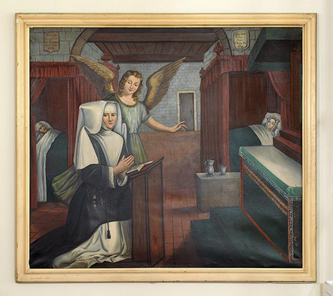 Réalisé en 1882 par une religieuse de la Visitation d'Autun, ce tableau est la copie d'une peinture représentant soeur Niault, Maîtresse des soeurs à l'hospice d'Arnay-le-Duc en 1711.