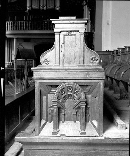La date 1553 est gravée à l'intérieur d'un cartouche rectangulaire sur la jouée d'une des stalles gauche.