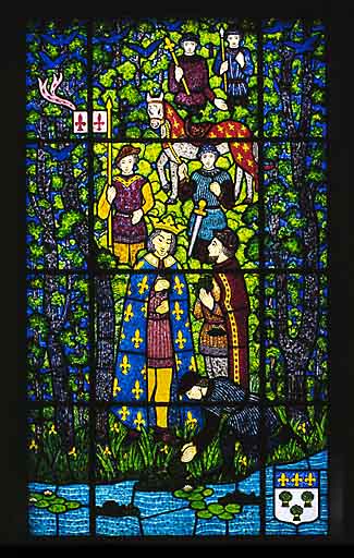 verrière : Saint Louis goûtant le cresson à la fontaine de Tilly