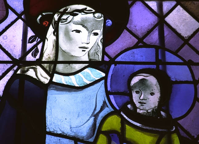 Vitrail réalisé par Pauline Peugniez et Jean Hébert-Stevens d'après un carton de Pauline Peugniez. Présenté à l'exposition de Vitraux et Tapisseries modernes (Paris, Petit-Palais, 4-30 juin, 1939, n°28), avant d'être installé dans l'église paroissiale de Crestot.