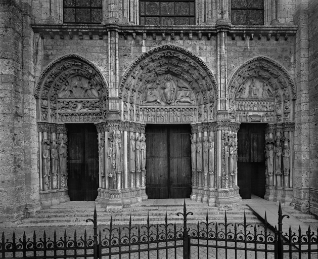 ensemble des 3 portails formant le portail Royal (6 statues, 4 colonnettes, 6 vantaux)