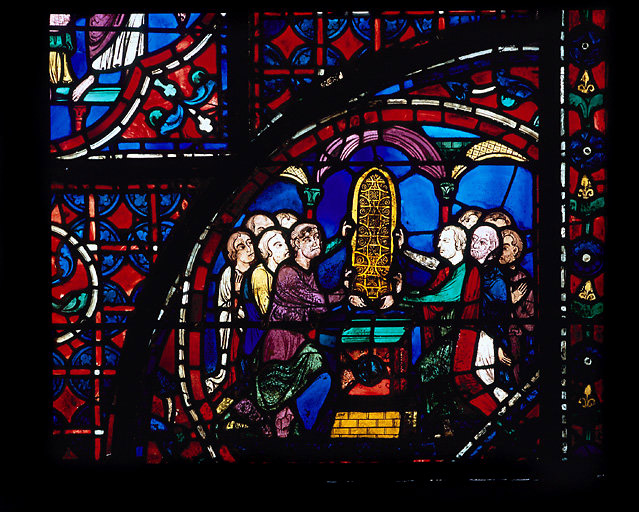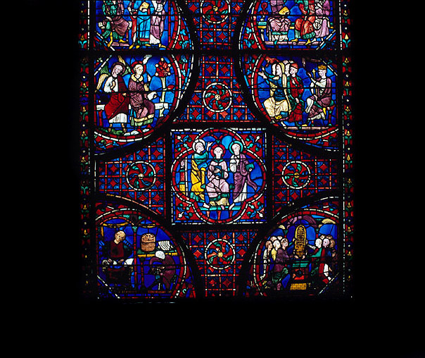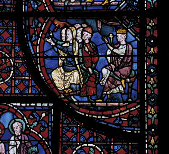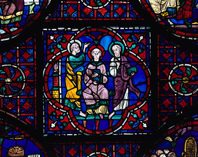 Verrière contemporaine de la cathédrale actuelle reconstruite après l'incendie de 1194. Selon la chronologie traditionnelle, elle peut être datée entre 1220 et 1225.