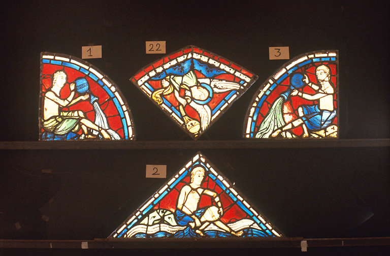 Verrière contemporaine de la cathédrale actuelle reconstruite après l'incendie de 1194. Selon la chronologie traditionnelle, elle peut être datée entre 1205 et 1215.