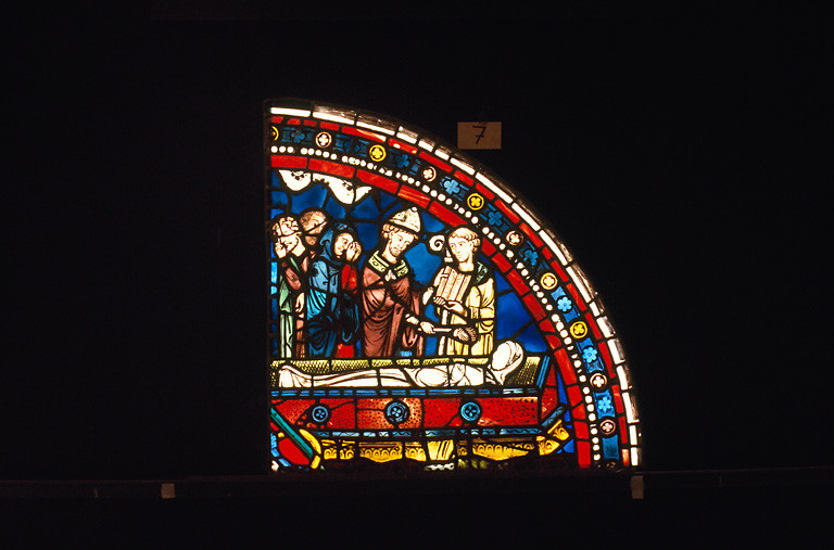 Verrière restaurée en 1897 par Gaudin, en 1919 par Bonnot (restitution de panneaux de bordure), puis dans les années 1980.