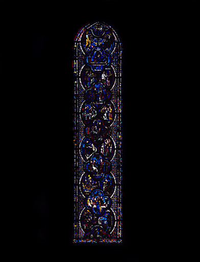 Verrière contemporaine de la cathédrale actuelle reconstruite après l'incendie de 1194. Selon la chronologie traditionnelle, elle peut être datée entre 1205 et 1215.