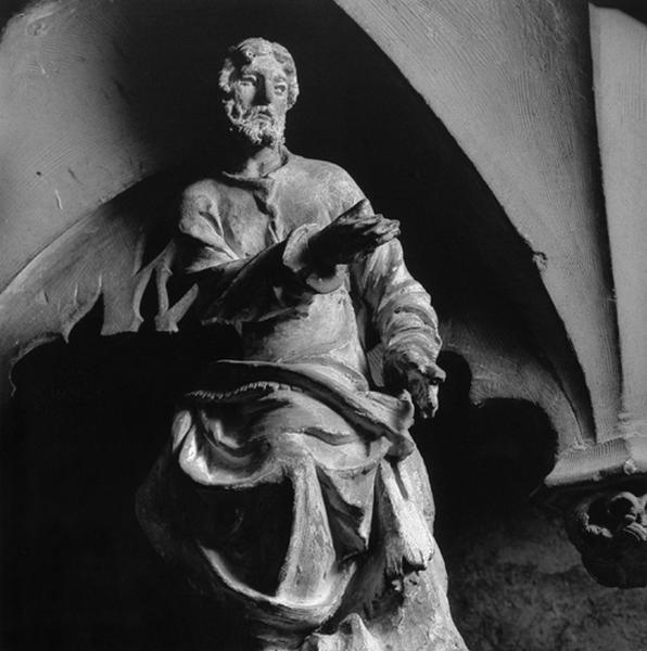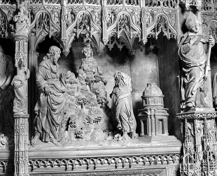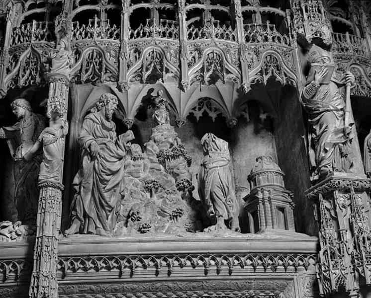 Trois groupes sont commandés à Thomas Boudin dans un marché passé le 20 août 1611 : les Tentations du Christ au désert, la Cananéenne et la Transfiguration qui doivent être posés avant le jour de Pâques 1612. Le contrat prévoyait de suspendre un dragon à la voûte, qui a disparu ou ne fut pas réalisé.