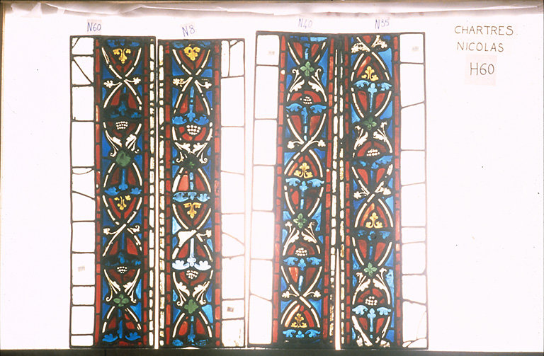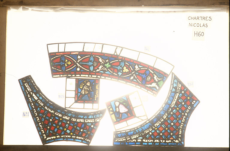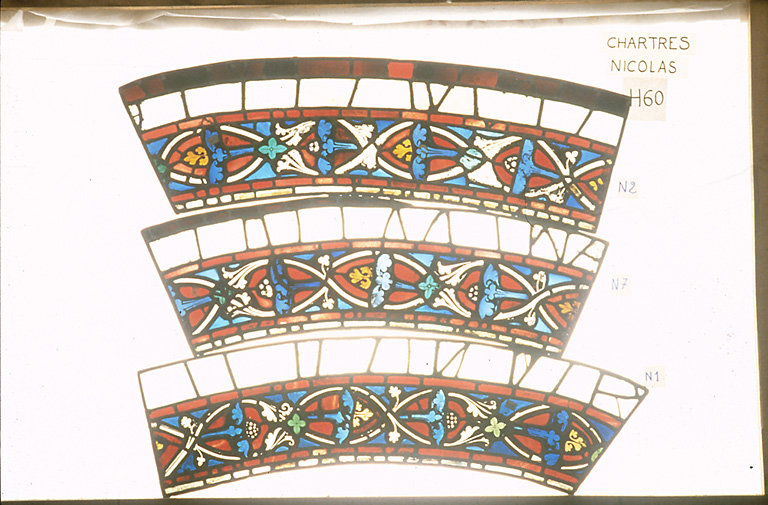 Verrière contemporaine de la cathédrale actuelle reconstruite après l'incendie de 1194. Selon la chronologie traditionnelle, elle peut être datée entre 1220 et 1225.