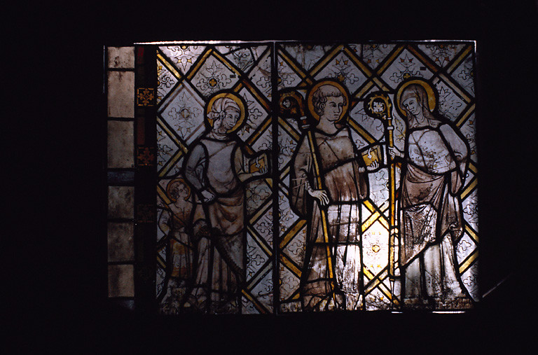 Verrière qui ne se trouve pas à son emplacement d'origine. Elle a été très restaurée en 1908 par Gaudin (partie inférieure), remise en ordre et restaurée en 1909 puis dans les années 1980.