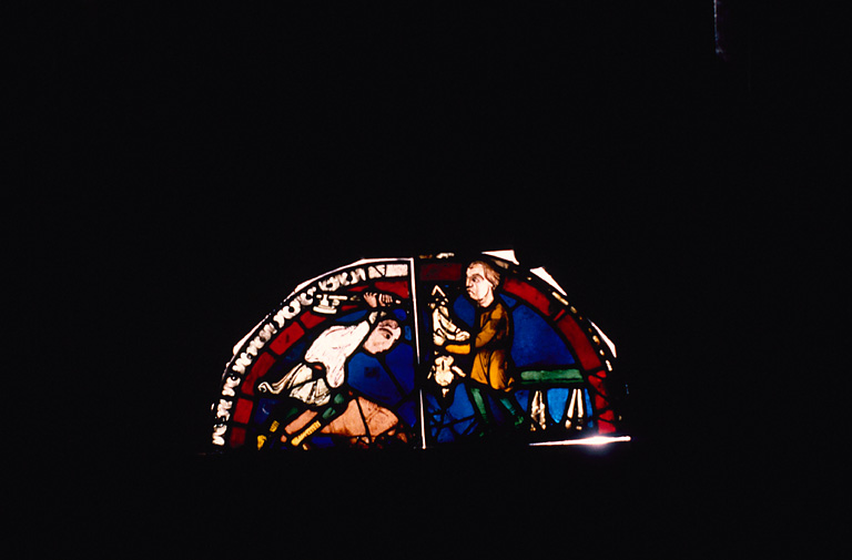 Verrière restaurée en 1908-1909 par Gaudin, en 1920 par l'atelier Lorin avec restitution des panneaux manquants (détruits en 1816), par Charles Lorin en 1927, enfin dans les années 1980.