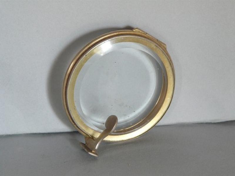 Ostensoir en métal repoussé, fondu, ciselé, découpé et doré composé d'un pied polylobé reposant sur trois pattes, d'une tige à noeud aplati surmontée d'une gloire ornée de médaillons en émail peint et sommée d'une croix. Le pied, le noeud et la gloire sont ornés de cabochons imitant le rubis. Lunule en argent repoussé et doré.