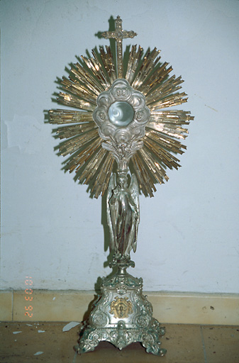 Ostensoir du milieu du 19e siècle exécuté par l'atelier d'orfèvres parisien Placide Poussielgue-Rusand et offert à la paroisse par l'Empereur Napoléon III en 1870.