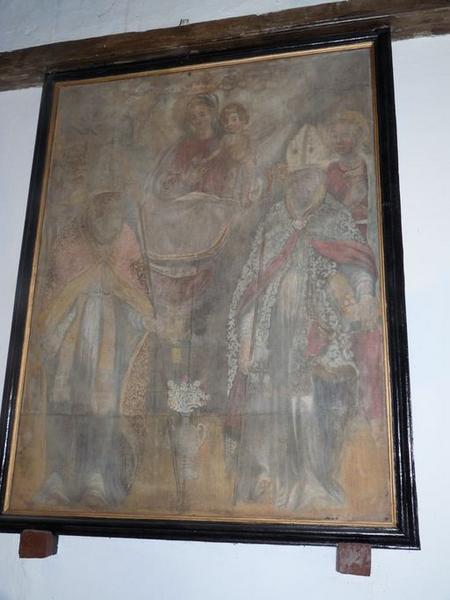 tableau d'autel : Apparition de la Vierge à l'Enfant à saint Blaise, saint Pierre, saint Nicolas et sainte Lucie