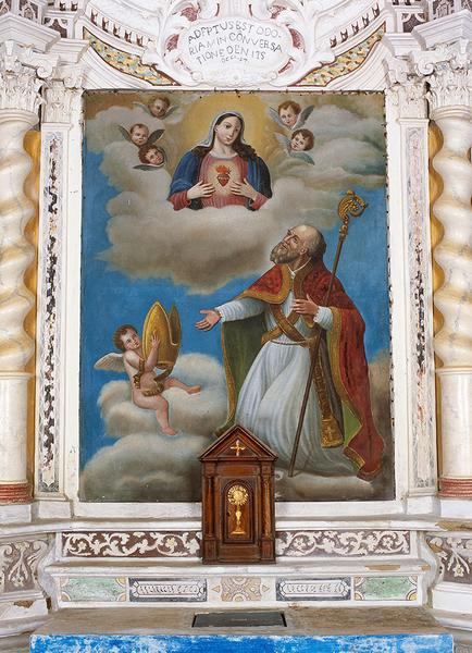 Tableau d'autel de la fin du 18e siècle ou du début du 19e siècle figurant dans l'inventaire des biens dépendant de la fabrique paroissiale dressé le 9 février 1906.