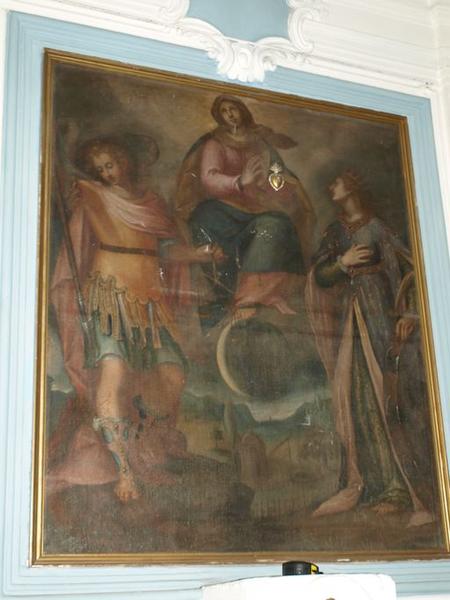 tableau d'autel : Saint Michel et sainte Catherine d'Alexandrie aux pieds de l'Immaculée Conception