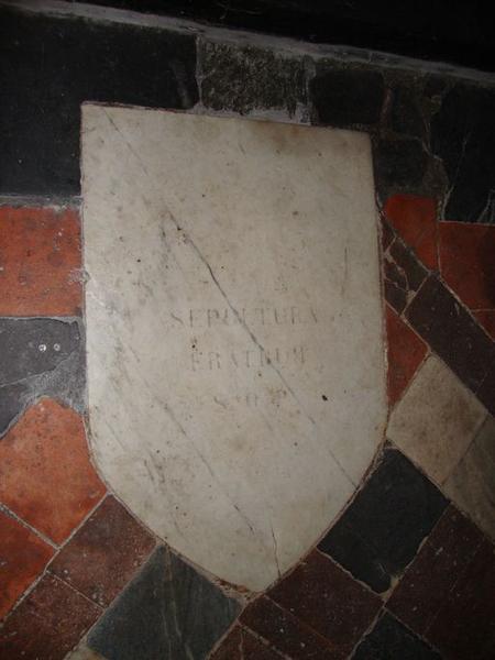 Epitaphe en latin gravée sur l'oeuvre : SEPULTURA FRATRUM S. O. P : sépulture de l'ordre des Frères prêcheurs.