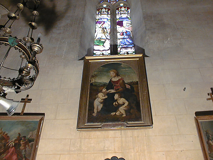 tableau et son cadre : La Vierge à l'Enfant avec le petit saint Jean-Baptiste dite La Belle Jardinière