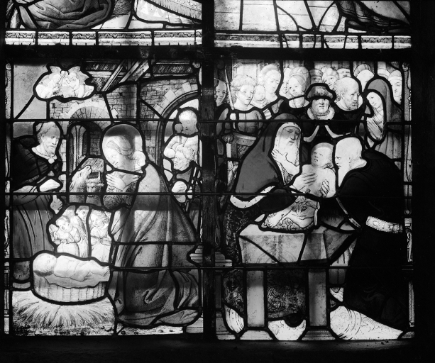 Verrière (verrière historiée) : Enfance du Christ, Vie de la Vierge (baie 3)