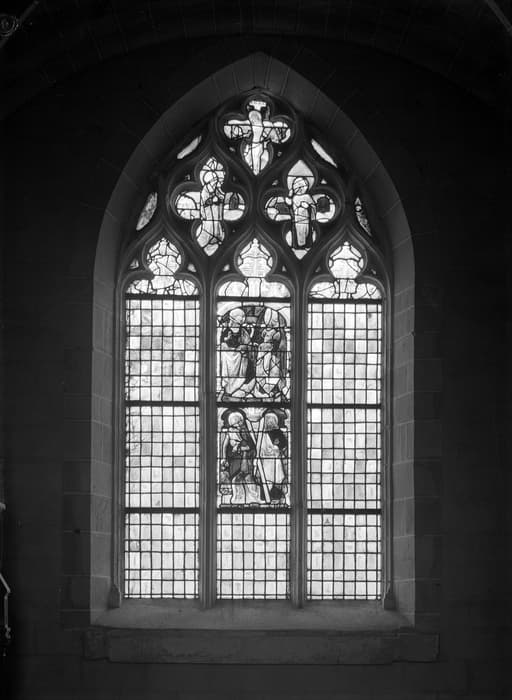 Verrière (verrière hagiographique) (baie 3), ancienne collégiale, actuellement église Sainte-Marie-Madeleine (Champeaux)