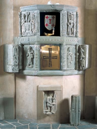 POP | Plateforme ouverte du patrimoineDemi-reliefs : saint Jean-Baptiste, saint Pierre et saint Paul portant le voile de la sainte Face, Christ portant les instruments de la Passion, saint Jean