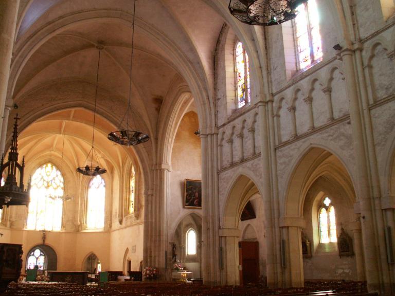 Église paroissiale Saint-Laurian : D'origine romane, la collégiale Saint-Laurian a été profondément remaniée au 16e siècle, notamment par la construction d'un chur polygonal de style flamboyant, menée grâce aux libéralités du chanoine Pierre Dubreuil (1537). La nef et son transept à absidioles sont l'uvre d'Henri Dauvergne qui dirigea dans les années 1880-1890 la restauration de l'édifice, et sa reconstruction partielle suite à l'effondrement du clocher en 1882. On note enfin, sur la façade occidentale, le réemploi d'un portail gothique de la fin du 15e siècle.£Les vitraux : L'église Saint-Laurian conserve plusieurs vitraux contemporains de la reconstruction du choeur en 1537, notamment la baie 104, offerte en 1539 par le chanoine Dubreuil, le tympan de la baie 100 et quelques fragments au sommet des baies 101 et 102. £Dans la seconde moitié du 19e siècle, l'atelier Lobin intervient dès 1871 (baie 117), mais la campagne de création de vitraux ne reprend qu'après la reconstruction de la nef, suite à l'effondrement du clocher en 1882. Ainsi, le successeur de Lobin, Joseph-Prosper Florence, complète en 1895 les trois baies du choeur (100, 101 et 102), puis, en collaboration avec son associé Louis Heinrich, il réalise un ensemble de 8 verrières à personnages pour les bas-côtés de la nef, entre 1900 et 1904. £Dans les années 1930, l'église est dotée de vitraux art déco issus de l'atelier Gouffault, d'Orléans, qui pose trois verrières dans les chapelles rayonnantes du chur en 1934, puis un ensemble de 8 verrières pour les fenêtres hautes de la nef, réalisé en 1935 en collaboration avec le peintre cartonnier André-Louis Pierre.