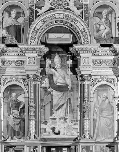 POP | Plateforme ouverte du patrimoine5 tableaux du corps central du retable de Pierre de la Baume : saint Pierre, saint Paul, saint André, saint Oyend, saint Claude et Vierge à l'Enfant