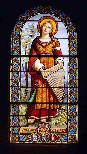 Verrière exécutée par l'atelier Lorin à Chartres en 1882 et offerte à l'église de Lailly par la famille de Lorge. la représentation de Sainte Cécile prend pour modèle le tableau de Raphaël sur ce thème, conservé à la pinacothèque de Bologne.
