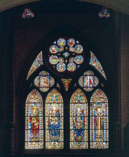 Ensemble de 7 verrières comportant 20 lancettes et 11 roses polylobées.