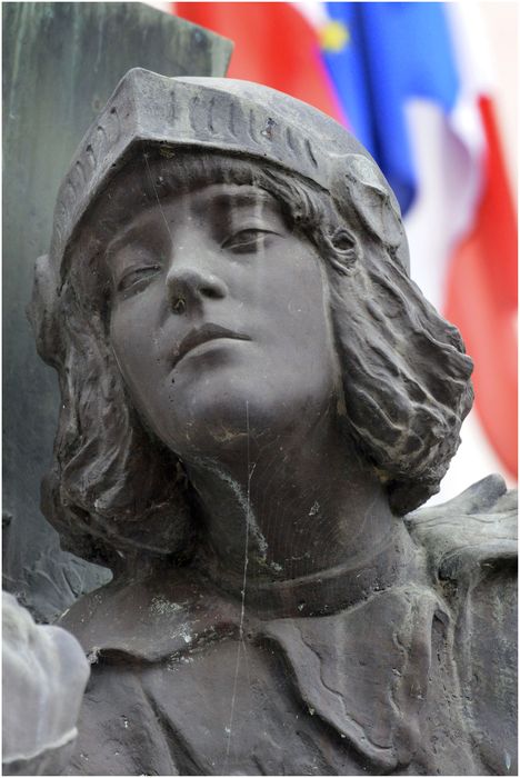 vote de six mille francs du conseil municipal le 13 juillet 1919 ouvrant la collecte communale ; vote de cinq cents francs par l'administration de l'hôpital de Langogne le 16 juin 1921 vote de dix mille francs de subvention municipale en 1921 plans et devis approuvés par la préfecture le 29 juillet 1922 prix forfaitaire du groupe fondu en cire perdue fixé par Réal Del Sarte le 16 juin 1922, s'élevant à dix sept mille francs livre en gare de Langogne ; selon les propres termes du sculpteur, ce groupe représente Jeanne d'Arc héroïne nationale assistant dans ses derniers moments celui qui vient par son sacrifice sublime de rendre à la France, avec la victoire, l'Alsace et la Lorraine