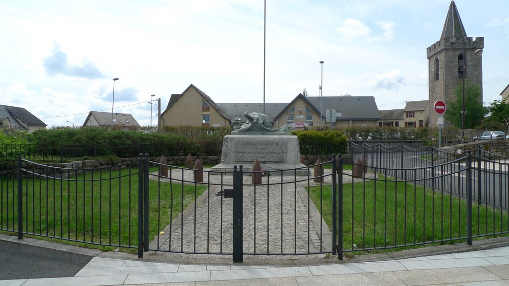 dédicace gravée sur la face principale du socle, transcription : St Chély d'Apcher à ses enfants tombés pour que la France vive 1914 1918 ; noms des morts gravés sur les faces latérales du socle ; signature du sculpteur fondue sur la terrasse du groupe, angle avant droit ; signature du fondeur fondue sur la base du groupe, face latérale droite