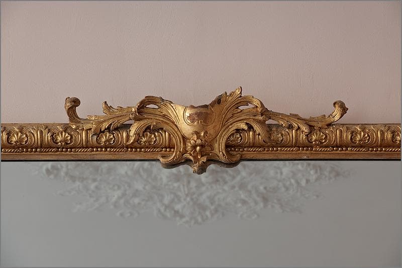 lambris d'appui ; plafond ; cheminée ; alcôve ; glace