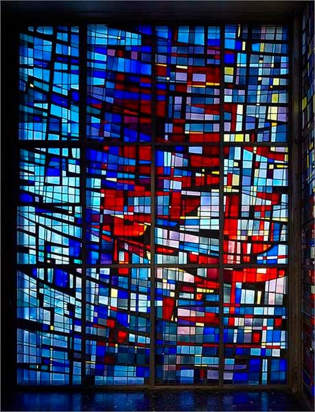verre transparent (coloré) ; plomb (réseau) ; métal