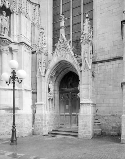 POP | Plateforme ouverte du patrimoine2 portails avec statues : 4 martyrs de la Légion thébaine ; 2 hauts-reliefs : 2 colombes du Saint-Esprit
