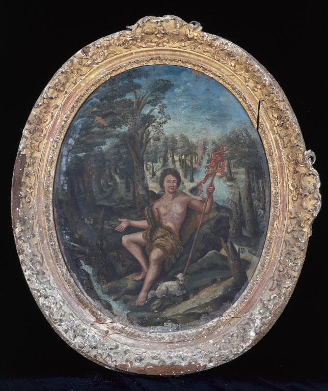 Paire de tableaux avec leurs cadres : Saint Jean-Baptiste et saint Charles Borromée