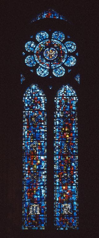 Ensemble de deux verrières allégoriques : Les Litanies de la Vierge et les Instruments de la Passion (baies 15 et 17)