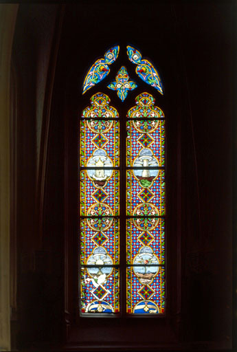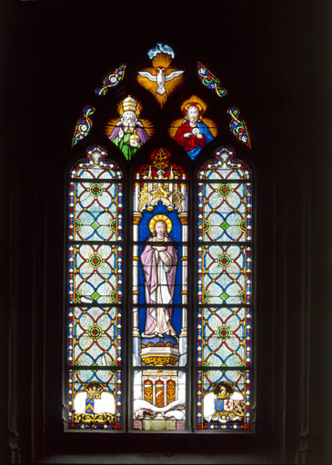 Les verrières 1, 2, 3 ont été données par Alexandre Adam, posées en 1868, exécutées par Julien-Stépane Bazin, verrier à Mesnil-Saint-Firmin, Oise. Au bas des verrières 1 et 3, décorations décernées à Alexandre Adam. La verrière 4 a été posée en 18 (.), exécutée par M. Bazin ; au bas des verrières se trouvent des armoiries (partiellement détruites) de Morel de Bonicourt, de Belvalet d'Humeroeuille, de Dument de Gourset.