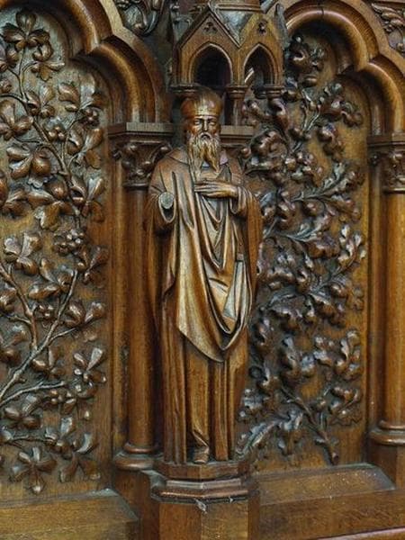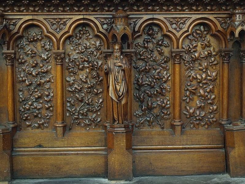 POP | Plateforme ouverte du patrimoineStalles de confrères et 3 statuettes : saint Pierre, les Docteurs de l'Eglise, évêque