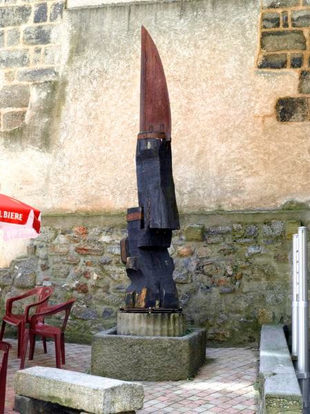sculpture figurant un couteau sur un socle