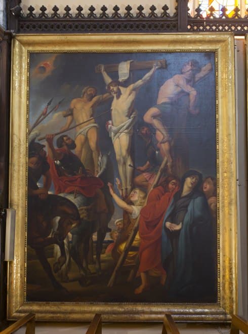 tableau avec son cadre : Le Christ entre les deux larrons