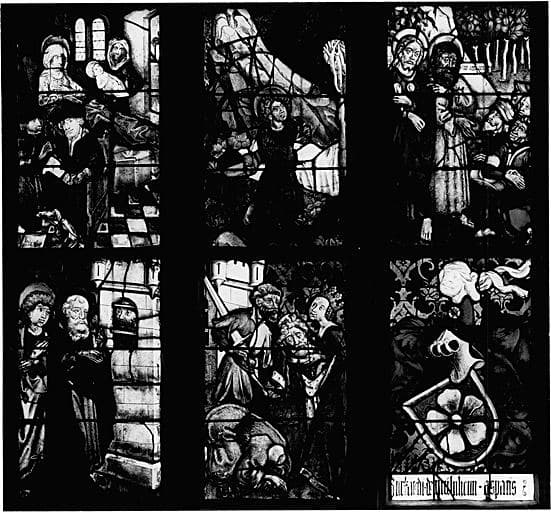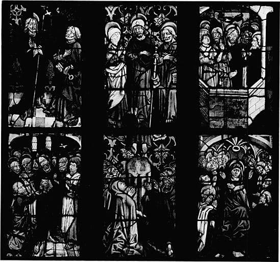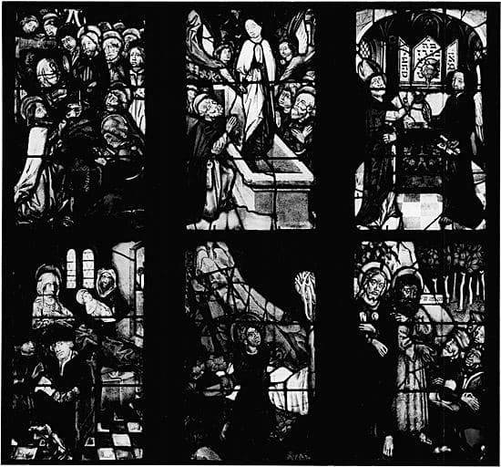 verrière figurée : vie glorieuse du Christ et vie de saint Jean-Baptiste (baie 2)