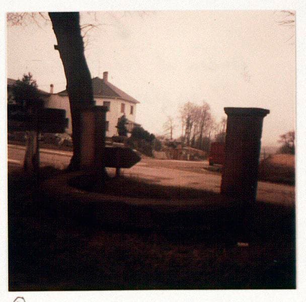 Banquette demi-circulaire, terminée par deux piliers à chapiteau.
