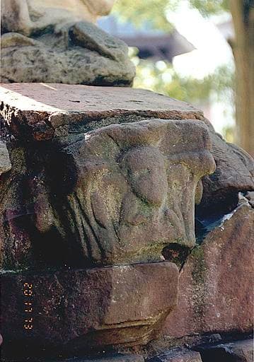 grès (jaune) : décor en ronde bosse ; grès (rose) : décor en haut relief ; fer : fonte, peint