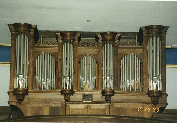 Buffet à trois plates-faces et quatre tourelles sur consoles. Pour les détails de l'instrument, voir la plaquette 'L'orgue Stiehr et Mockers 1870-1992' éditée lors d'une restauration de l'instrument, dont ont également été extraits les renseignements historiques.