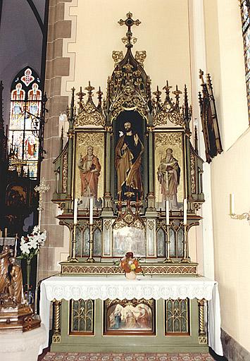 Les autels-retables secondaires ont été exécutés par l'atelier Jean Weyh à Colmar, en 1897. Les statues proviennent de l'Institut royal de l'art chrétien de Munich.