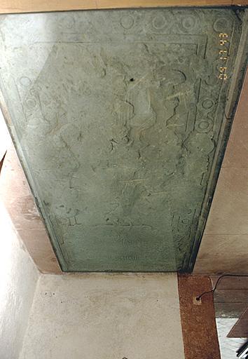 Dalle funéraire réalisée peu après le décès d'un noble mort en 1573. Le défunt pourrait être un membre de la famille von Rathsamhausen zum Stein. Elle a été restaurée en 2000, par l'entreprise colmarienne Schické, à cette occasion des fragments du décor sculpté furent retrouvés, notamment un chien ; les morceaux qui ne purent être replacés furent déposés à la mairie de la commune.