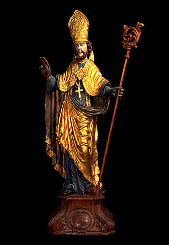 Saint Augustin est en habit d'évêque, avec une crosse, il bénit de la main droite.