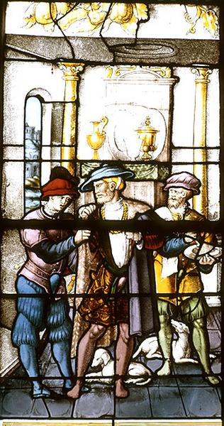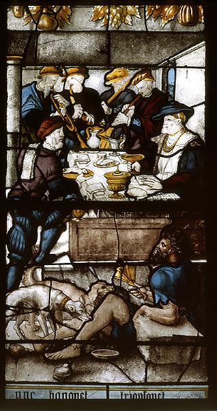 verrière historiée : la parabole du mauvais riche