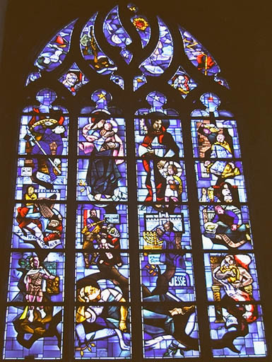 verre : verre antique, polychrome, grisaille sur verre ; plomb (réseau)