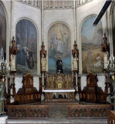 Le mobilier de la chapelle Saint-Vincent de Paul (autel tombeau, lambris et 7 statues)