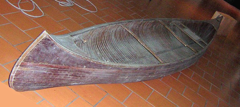 Cette barque se compose d'une coque lattée sur un squelette de membrures plates collées et cloutées à l'intérieur qui assurent la rigidité de l'ensemble. Les étraves sont très pincées et fortement relevées.