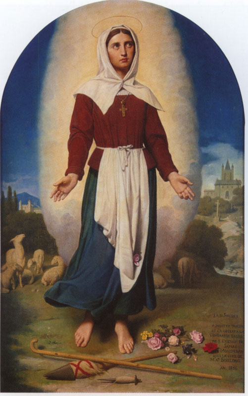 Ce tableau serait le résultat d'un voeu fait par Ingres suite à la guérison miraculeuse qu'il aurait obtenu pour un de ses neveux atteint d'une tumeur. Cette toile ex-voto est peinte dès 1856 pour orner l'église Saint-Etienne de Sapiac, où le curé fait orner la chapelle destinée l'accueillir par Armand Cambon, contribue en fait à renforcer la procédure de béatification de sainte Germaine qui intervient en 1867. En 2017, Sainte-Germaine est déplacée aux réserves du musée Ingres.